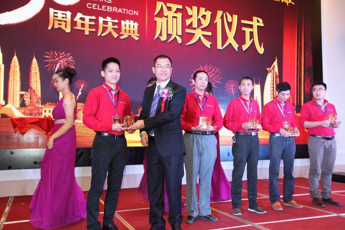 有這樣一些人,他們時刻以聯豐的發展作為自己的人生理想,將聯豐的目標視為自己的奮斗方向,是他們不斷的付出夯實了聯豐發展的基礎,是他們的智慧造就了聯豐的榮耀與未來。在此過程中,他們自身也得到了較快的發展,夯實了聯豐屹立于當地市場的基石,他們當之無愧的榮獲“榮耀三十年成就獎”,他們是來自于山東濟南唐鵬飛、浙江杭州戴加滿、江蘇啟東葛軍華、江蘇如皋謝海居、福建泉州洪漢成,有請蘇州聯豐木業有限公司副總經理李玉明先生為他們頒獎。