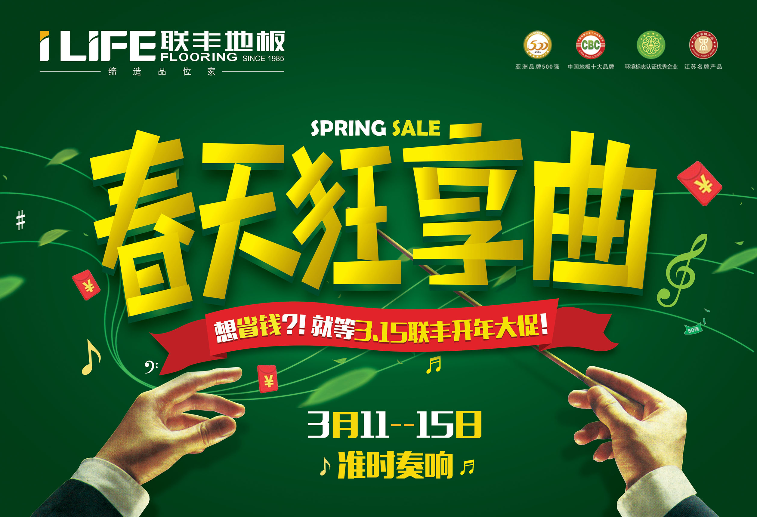 3月11日-15日,聯(lián)豐地板開年大促“春天狂享曲”將準時奏響,盛春時節(jié),來一場盛情相約!