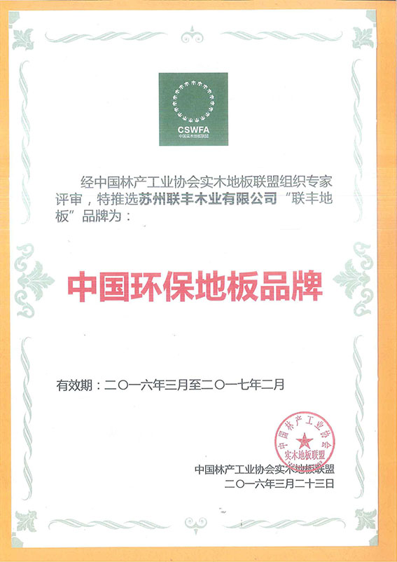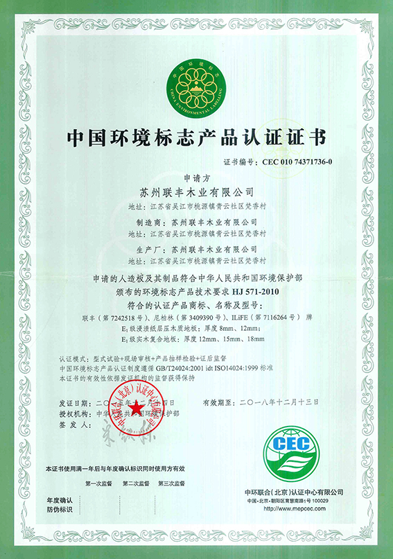 其實,去年江蘇就啟動“263專項行動”,打響碧水藍天保衛戰,作為重點企業的聯豐,已經通過了嚴格審核。正是因為我們牢記環保責任,重視技術投入,制造工藝升級,使得聯豐贏得了社會各界的肯定,中國環境標志優秀企業、中國環保地板品牌、ISO14001國際環境管理體系認證,中國環境標志產品認證等榮譽就是最好的褒獎。特別是十環優秀企業,作為目前國內最高標準的綠色環保認證,國家明文規定只有通過“十環認證”的產品才能稱為“綠色產品”,全國只有四千多家企業榮譽此譽,聯豐脫穎而出更代表著國家對聯豐在綠色環保方面的最大肯定。