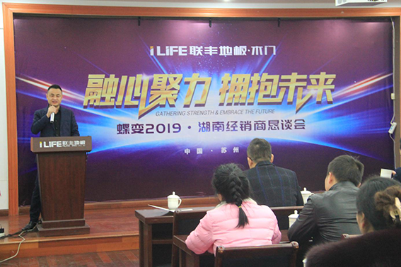 春暖花開,萬物復蘇。2月26日,尚沉浸在傳統節日春節喜悅中之際,融心聚力·擁抱未來——蝶變2019湖南經銷商懇談會在公司總部成功召開。大會圍繞著2019年度湖南的市場形勢作出部署,強調應順勢而變,進一步優化資源,全面實現扁平化管理模式,實施“產品、政策、管理”三接軌戰略,增強對終端門店的運營管理與指導,提升各門店的盈利能力和盈利成果。蘇州聯豐木業公司董事長沈建新、總經理李玉明以及營銷中心管理團隊、湖南核心經銷商匯聚一堂,共商共議。