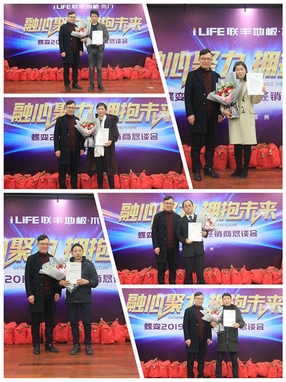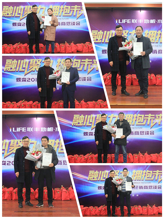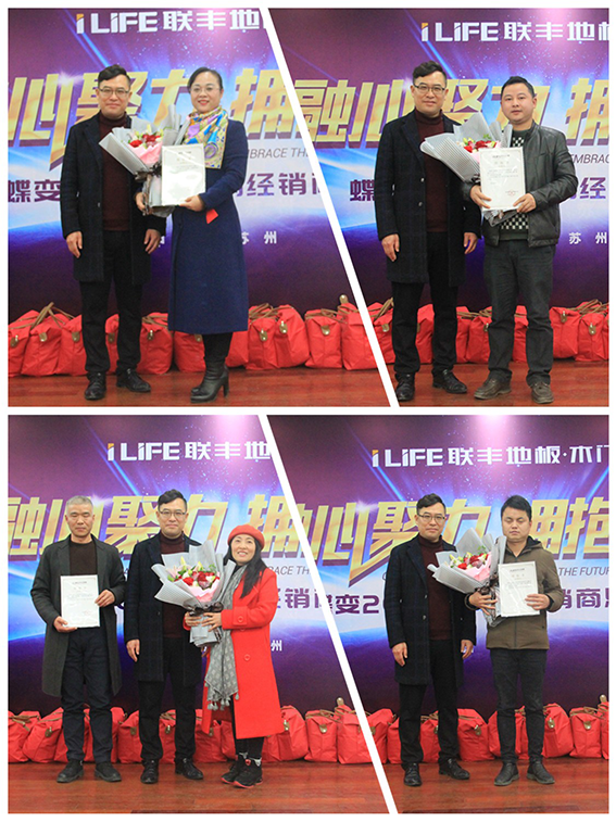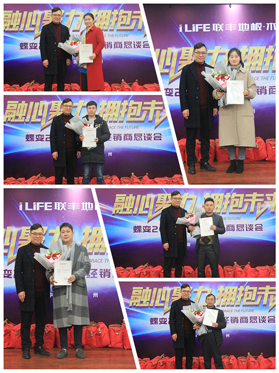 市場有域心無界,面對日趨激烈的競爭,他們迎難而上,無論炎炎夏日還是凜冽寒天,他們整日奔波市場上,積極開拓新的渠道,尋找新的利潤增長點。心有多寬,市場就有多大, 18年的數據記錄著他們不斷超越、勇攀高峰的驕人業績,湘潭、攸縣、石門、冷水江、衡山、張家界、岳陽、吉首、安鄉、梅城等獲得年度十大優秀經銷商,聯豐木業總經理李玉明、湖南營銷中心總經理羅雙宏為優秀者頒獎。