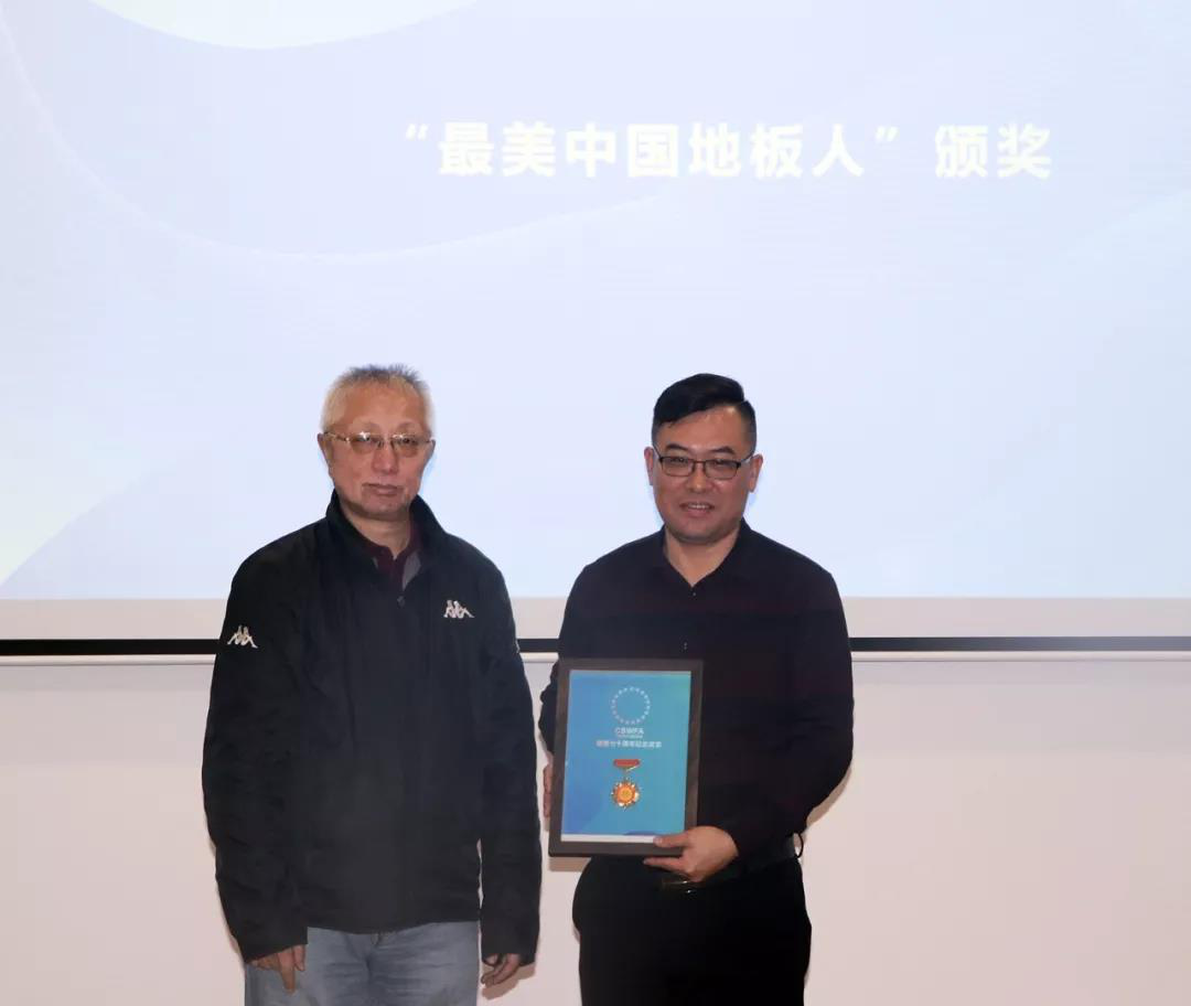 論壇結束后,頒獎嘉賓中國林產工業協會首席專家吳曉松為獲獎企業現場頒發“最美中國地板人”獎,聯豐集團董事長沈建新先生榮獲嘉獎。