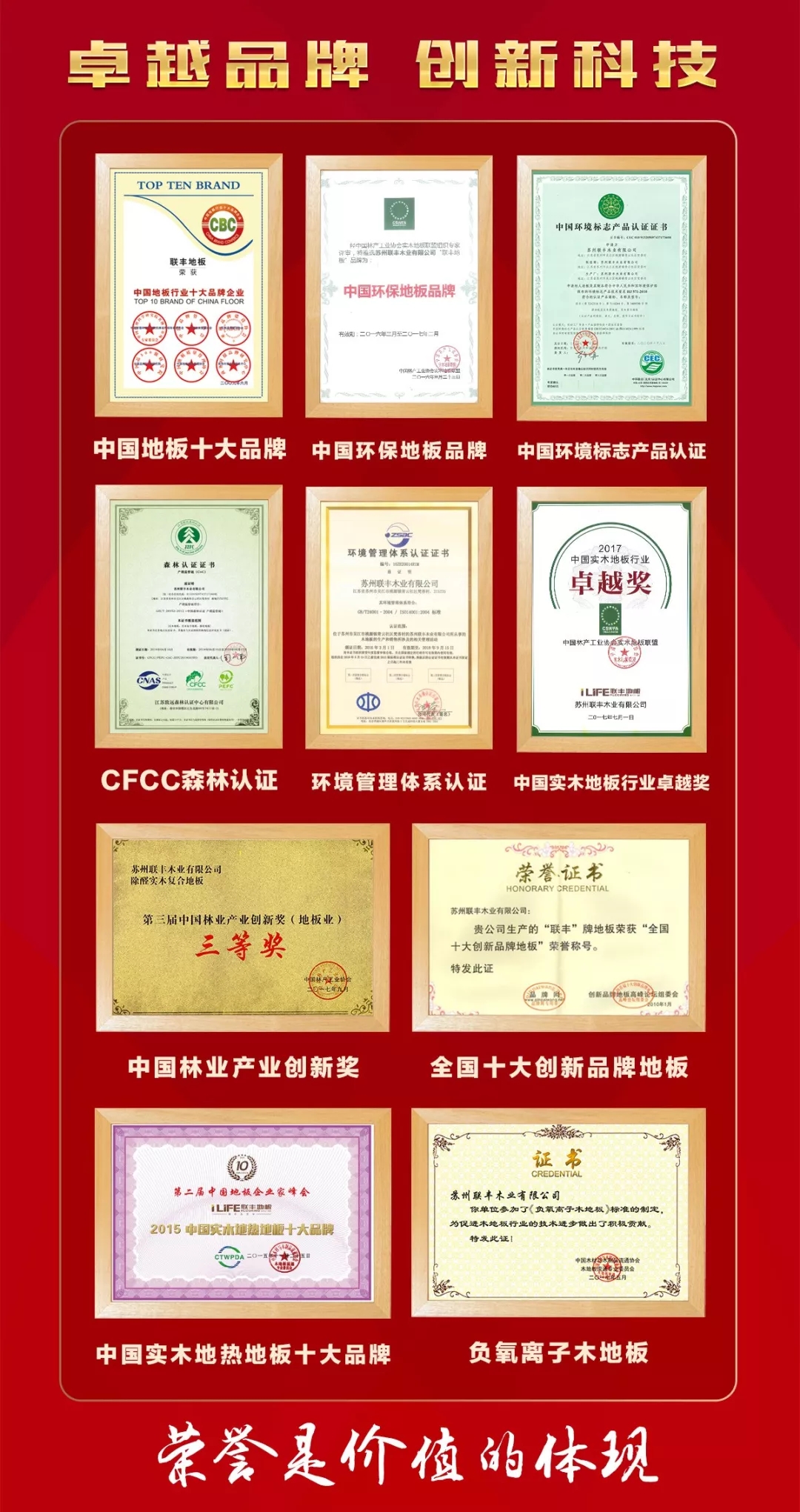 2018年,是聯(lián)豐躍馬揚鞭,不斷奮進的一年。從多年蟬聯(lián)中國地板十大品牌、中國地板影響力十大品牌、中國地板十佳品牌(地暖類),到中國地板質(zhì)量售后服務(wù)金獎、地板類第一個中國森林認(rèn)證CFCC-COC證書,再到榮膺“改革開放40年實木地板業(yè)風(fēng)云人物”.……風(fēng)水生起逐浪高,聯(lián)豐的品牌影響力不斷增強。