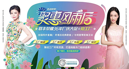 2020年初新冠肺炎疫情的發(fā)生,對(duì)人類社會(huì)造成了全球性、全領(lǐng)域的沖擊,各行業(yè)都遭受著不可估量的沖擊,家居建材行業(yè)也不例外,一度出現(xiàn)線下門店停擺、整體市場(chǎng)交易遇冷的情況,但家居需求只是被壓抑并沒有消失。隨著疫情漸已遠(yuǎn)去,建材消費(fèi)市場(chǎng)也在快速回暖,為打贏后疫情時(shí)代新一輪的品牌戰(zhàn),市場(chǎng)份額搶奪戰(zhàn),聯(lián)豐將于8月份在全國(guó)千家門店同時(shí)啟動(dòng)“聚惠風(fēng)雨后”——聯(lián)豐榮耀36年廠慶大促,最大程度地讓利千萬業(yè)主,以慶祝自己36歲生日,8月15日邀請(qǐng)內(nèi)地著名歌手慕容曉曉親臨工廠總部,8月22日邀請(qǐng)著名歌手陶鈺玉親臨湖南長(zhǎng)沙,為廠慶大促助力加油。同時(shí),活動(dòng)期間我們將面對(duì)全國(guó)消費(fèi)者開展全網(wǎng)直播互動(dòng),線上線下同享鉅惠。