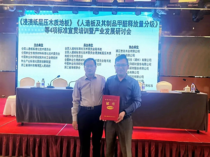 近日,GB/T 18102-2020《 浸漬紙層壓木質地板》等 4項重要國家標準宣貫培訓暨產業發展研討會在浙江省湖州市南潯花園名都大酒店盛大開幕。作為GB/T 18102-2020《 浸漬紙層壓木質地板》國家標準起草單位的蘇州聯豐木業有限公司應邀參加了此次會議,并榮獲了此項標準制修訂工作證書。