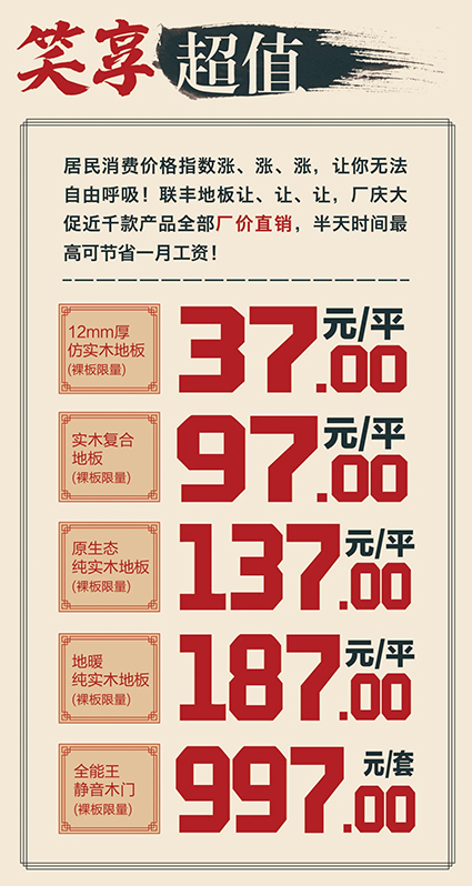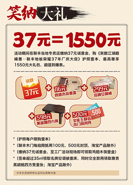 喜歡他,就趕快報名,親臨聯豐與偶像零距離,現場更為您的愛家準備了數百款品優價廉的地板和木門產品,砸金蛋、抽大獎等環節將誕生百萬豪禮,就等你來搶!