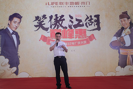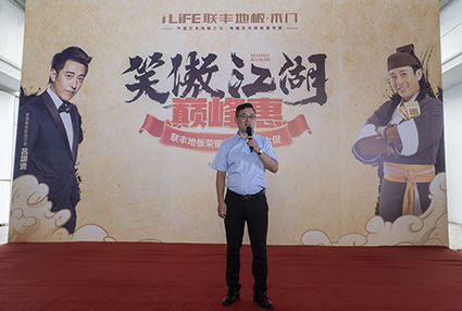 在激揚的音樂中,蘇州聯豐木業有限公司總經理李玉明首先致歡迎辭,他表示始創于1985年的聯豐作為中國地板行業家喻戶曉的品牌,在37年的發展歷程中,已給千萬消費者帶來了至高無上的優質生活體驗,并以此作為企業追求的發展目標。最近十年來,每一次廠慶大促都以回報消費者為己任,把好產品、好服務帶給大家,今年的大促也是如此!