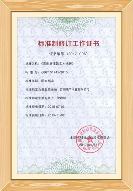 這么多年來,聯豐地板已起草了多項行業標準、國家標準,站在行業發展的制高點。