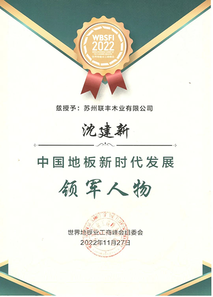 聯豐憑借在地板領域技術創新精神榮膺2022世界地板業工商峰會金獎產品,董事長沈建新獲中國地板新時代發展領軍人物,雙料殊榮為聯豐在地板領域的成就再添華彩篇章!