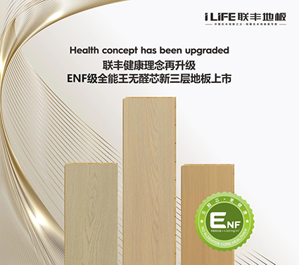 聯(lián)豐健康理念再度升級,ENF級全能王無醛芯新三層地板上市,從E0(甲醛釋放量≤0.050mg/m3)到ENF(甲醛釋放量≤0.025mg/m3),聯(lián)豐為行業(yè)整體環(huán)保質量樹立了新標。