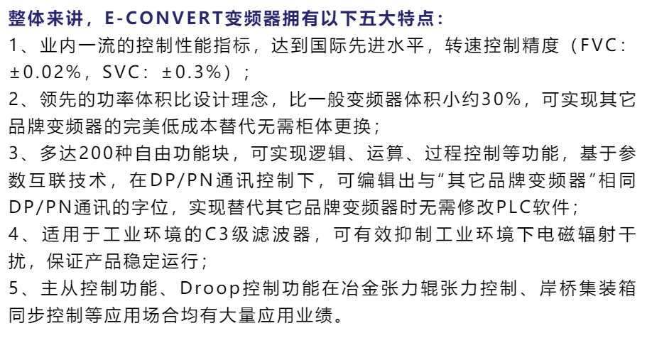 中冶南方自動(dòng)化E-CONVERT變頻器應(yīng)用于某鋼鐵公司翻車機(jī)系統(tǒng)的產(chǎn)品主要包括EC7和EC5系列,應(yīng)用功率段為18.5KW-400KW。作為中國(guó)首個(gè)整套應(yīng)用國(guó)產(chǎn)變頻器的原料廠翻車機(jī)系統(tǒng),通過采用業(yè)內(nèi)領(lǐng)先的無(wú)速度傳感器矢量控制技術(shù),可實(shí)現(xiàn)高性能控制指標(biāo):電機(jī)轉(zhuǎn)速控制精度±0.3%以內(nèi),啟動(dòng)轉(zhuǎn)矩180%,額定負(fù)載最低運(yùn)行頻率0.2Hz。現(xiàn)場(chǎng)滿足高負(fù)載的瞬間沖擊工況要求,可承受38輛敞車車皮對(duì)撞沖擊,在0.8s內(nèi)峰值電流僅為160%。